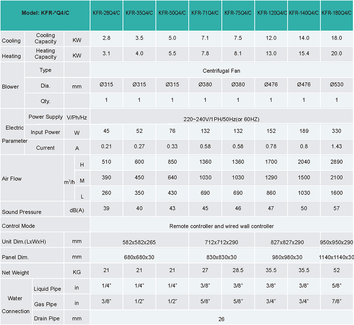 Heat Exchanger: Copper tube and hydrophilic AL fins, built-in or external electric expansion valve(optional)